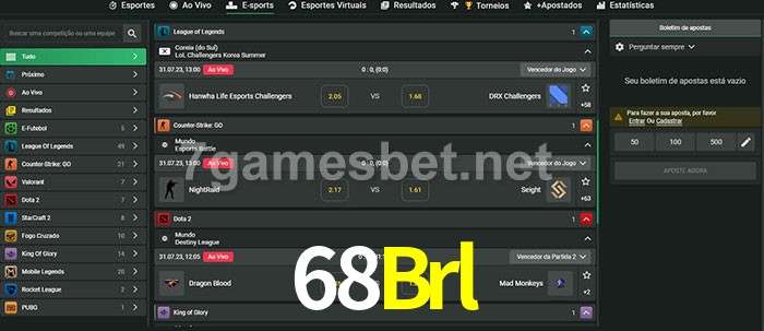 O 68Brl oferece uma grande seleção de opções de apostas em e-sports com probabilidades competitivas